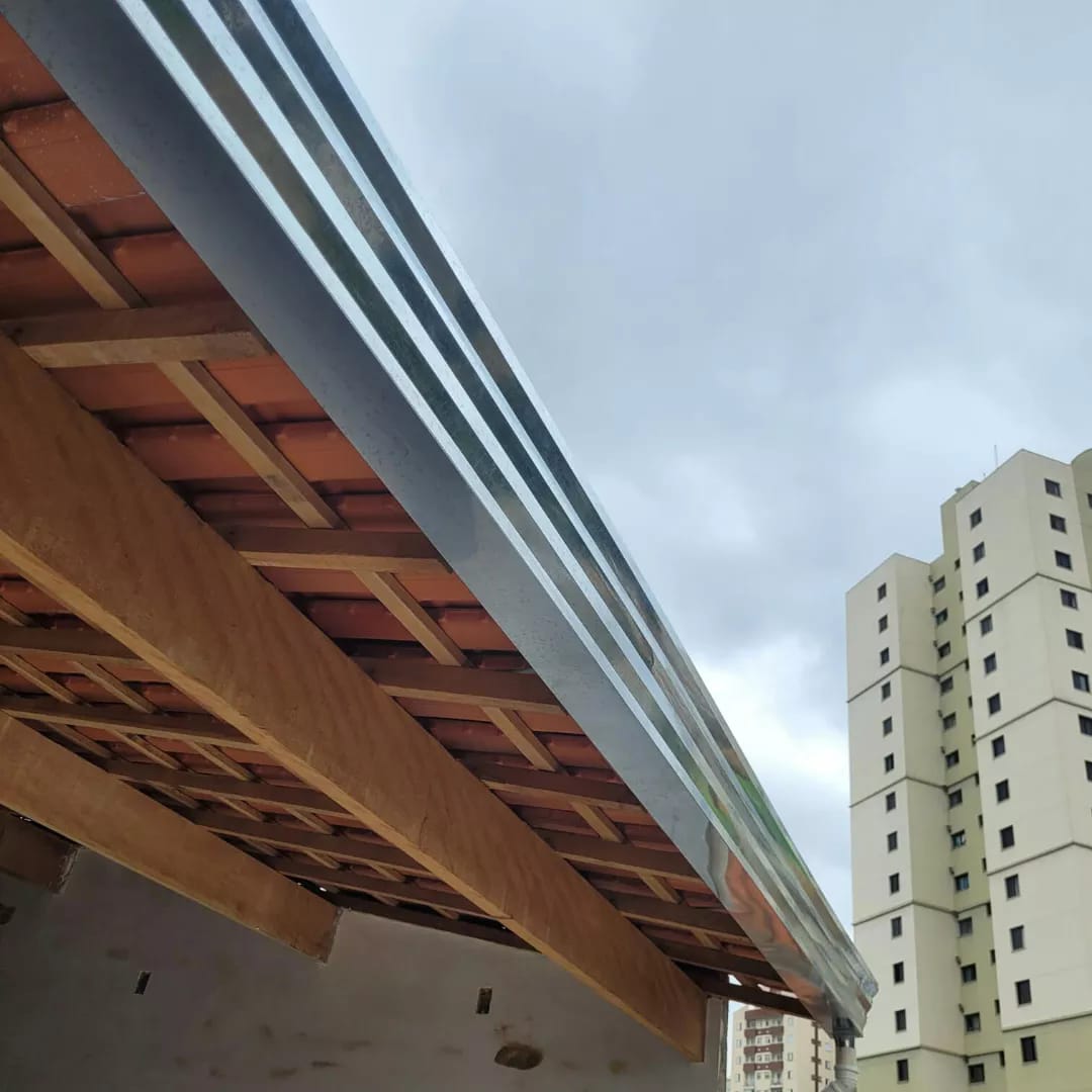 Fabricação e instalação de calhas e rufos personalizados, prevenindo infiltrações, direcionando o escoamento da água da chuva e protegendo a estrutura do imóvel contra danos causados pela umidade.
