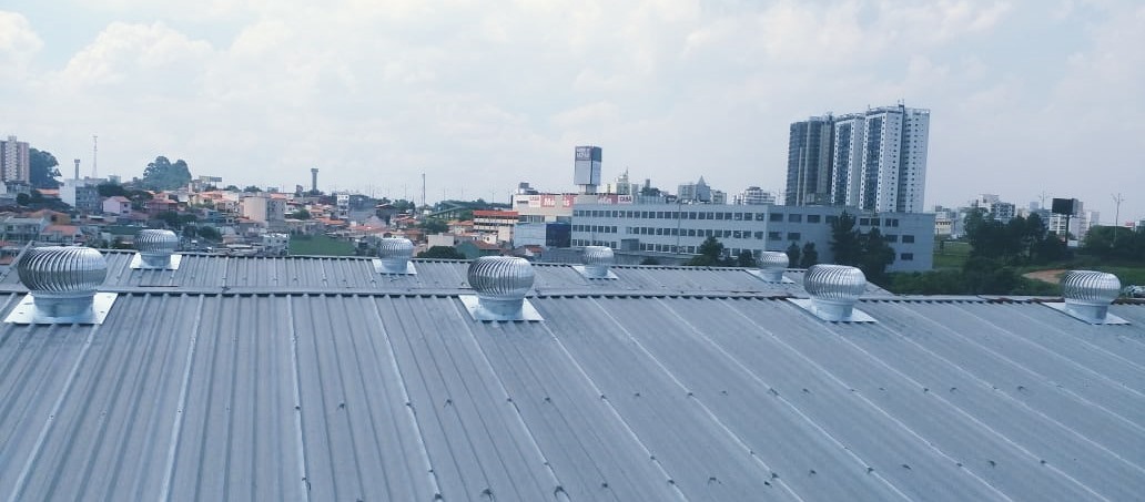 Fornecimento e instalação de exaustores eólicos, que proporcionam ventilação natural, silenciosa e econômica, sem consumo de energia elétrica, contribuindo para ambientes mais frescos e saudáveis.